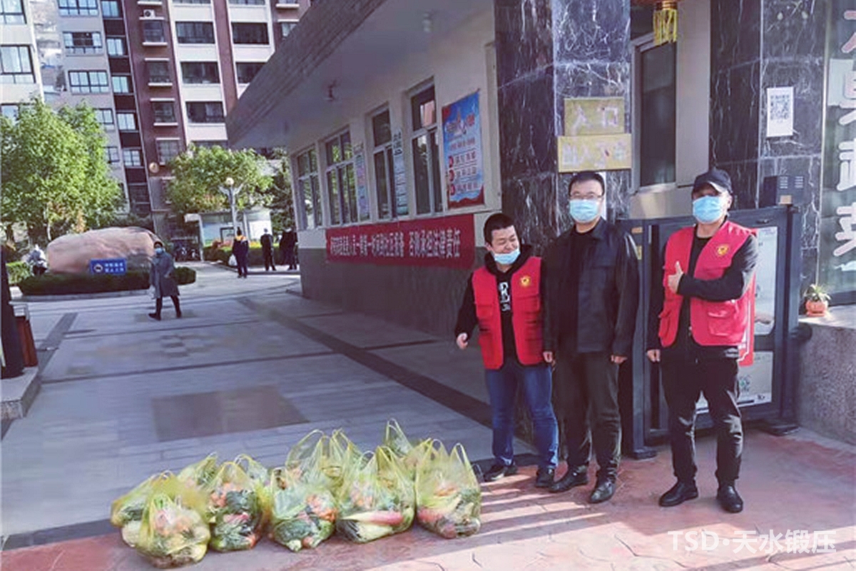 4月6日,熱心群眾麥積區田園蔬菜水果店楊建軍、姐妹超市王吉元分別給天水鍛壓機床(集團)有限公司天宇華成小區疫情防控人員捐贈了蔬菜、牛奶等,用赤誠愛(ài)心溫暖了堅守在“疫”線(xiàn)上的物業(yè)人。